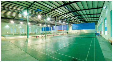 规模:广东省最大规模羽毛球馆:占地面积6700㎡, 室内42片塑胶标准场地(1号馆 18片场、2号馆 24片场)